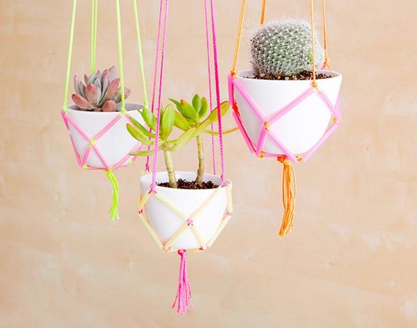 Using nothing but neon cord and neon straws (you know you have some stashed in that kitchen drawer from soirees of summers past), you can make these modern planters in just 15 minutes. So get ready to give your plants a heavenly hangout in no time!