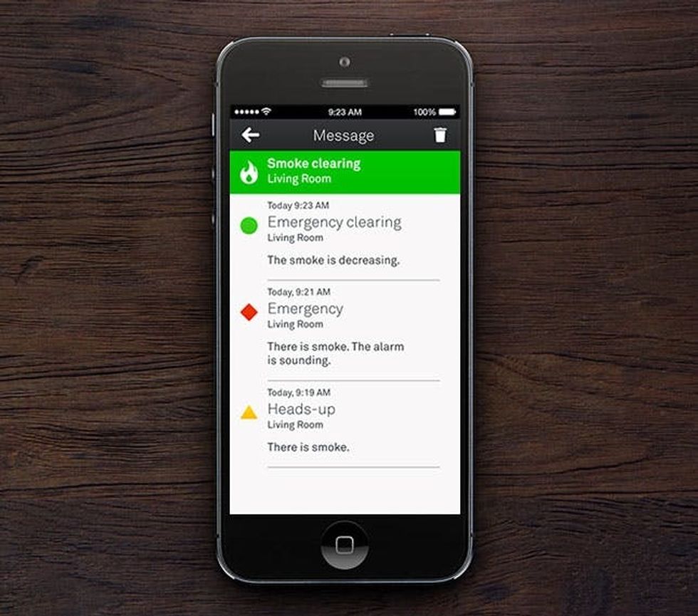 Instead of alarming you with terrible beeping noises and sirens, a clear voice accompanies an alarm sound when something is going wrong. It speaks to you in a human voice, similar to Siri, and tells you what the problem is and where it is happening. If you have more than one Nest Protect in your home, all devices can speak at the same time, whether or not your wi-fi is connected.