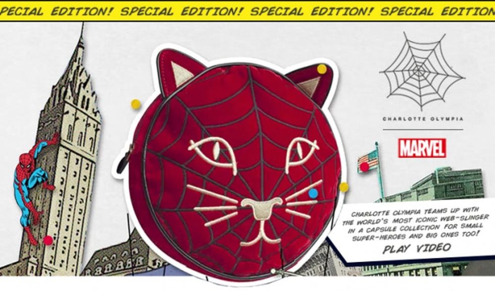 7. Charlotte Olympia x Marvel: We’d love to get caught in Charlotte Olympia’s web, especially when it’s so cute. They’ve created swanky red Incy Cool Cat Spiderweb kicks ($295) for kids and Super Octavia black webbed stilettos ($1,575) for the adult set, plus some can’t-miss accessories inspired by our favorite superhero.