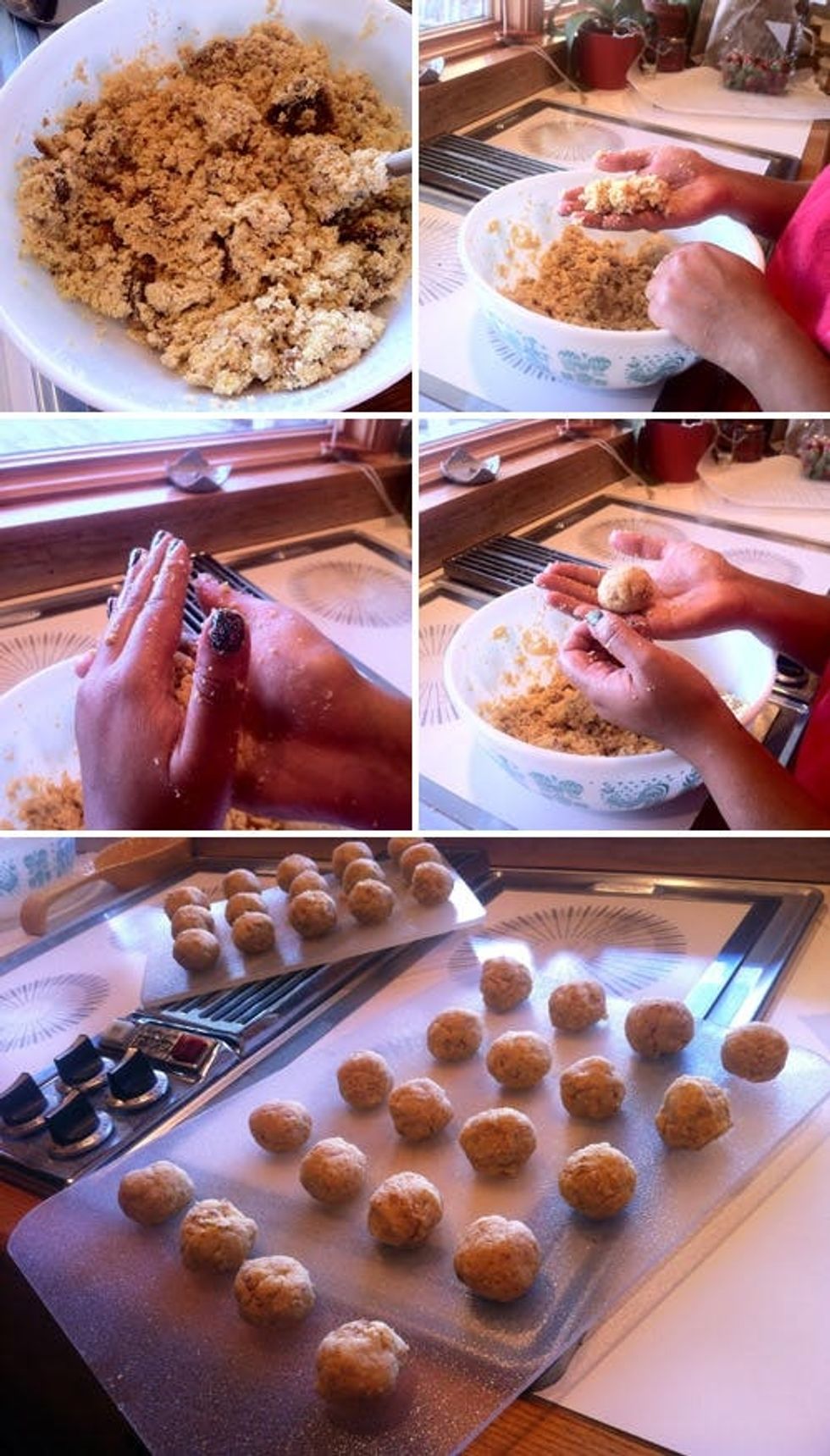 Mix together with your hands until you have a good consistency for creating cake balls. Simply ball in your palm, and then place on a cutting board, plate or platter (something that will fit in the fridge). Repeat until you’re done with your mix. One box will make 35 pops. Place in the fridge for about an hour.