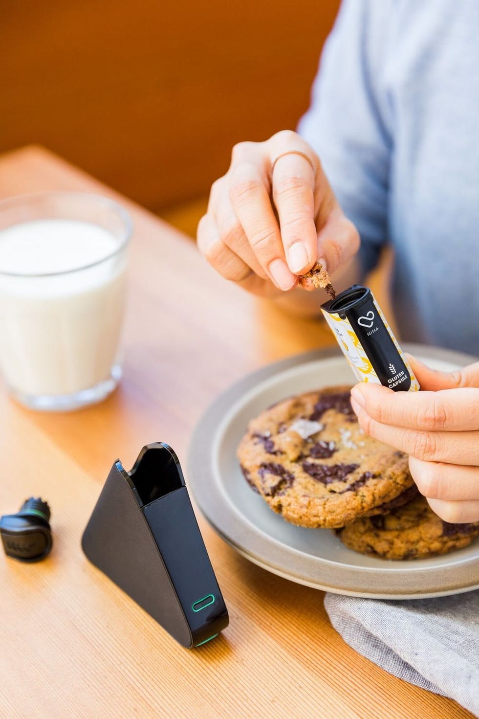 To use the pocket-sized Nima, you need the brand’s disposable Test Capsules ($62/12 or $239 for the Starter Kit, which includes the Gluten Sensor and 12 Test Capsules). Place a pea-sized piece of food (solid or liquid) into a capsule, and screw the lid on tight to grind the food into smaller pieces. Insert the capsule into the sensor, press the button, and wait. Inside, a pair of gluten-sensing antibodies, developed by Nima’s chemistry team, either attaches to the gluten protein in the food and alerts you or detects no gluten protein at all.