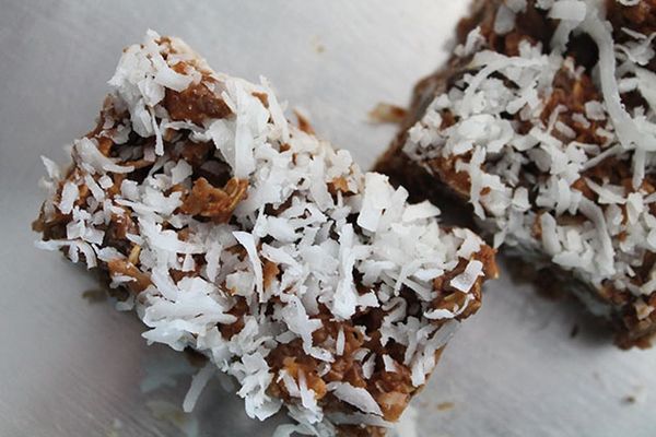 Ever have a craving for dessert late in the evening but too lazy cook something complicated or leave the house to buy something sweet? Me too! As an engineer here at Brit + Co, I get to taste test pretty much every sweet treat cooked up here at Brit HQ and, as it turns out, all that culinary creativity has totally rubbed off. For this concoction, I rummaged through my pantry and came up with coconut oil, peanut butter, oatmeal, chocolate chips, agave nectar, and coconut flakes. And guess what? The combination was totally delicious and didn’t even involve an oven. Thanks to our rockstar intern Nanette for helping me transform this homespun recipe into an official Brit + Co. dessert!