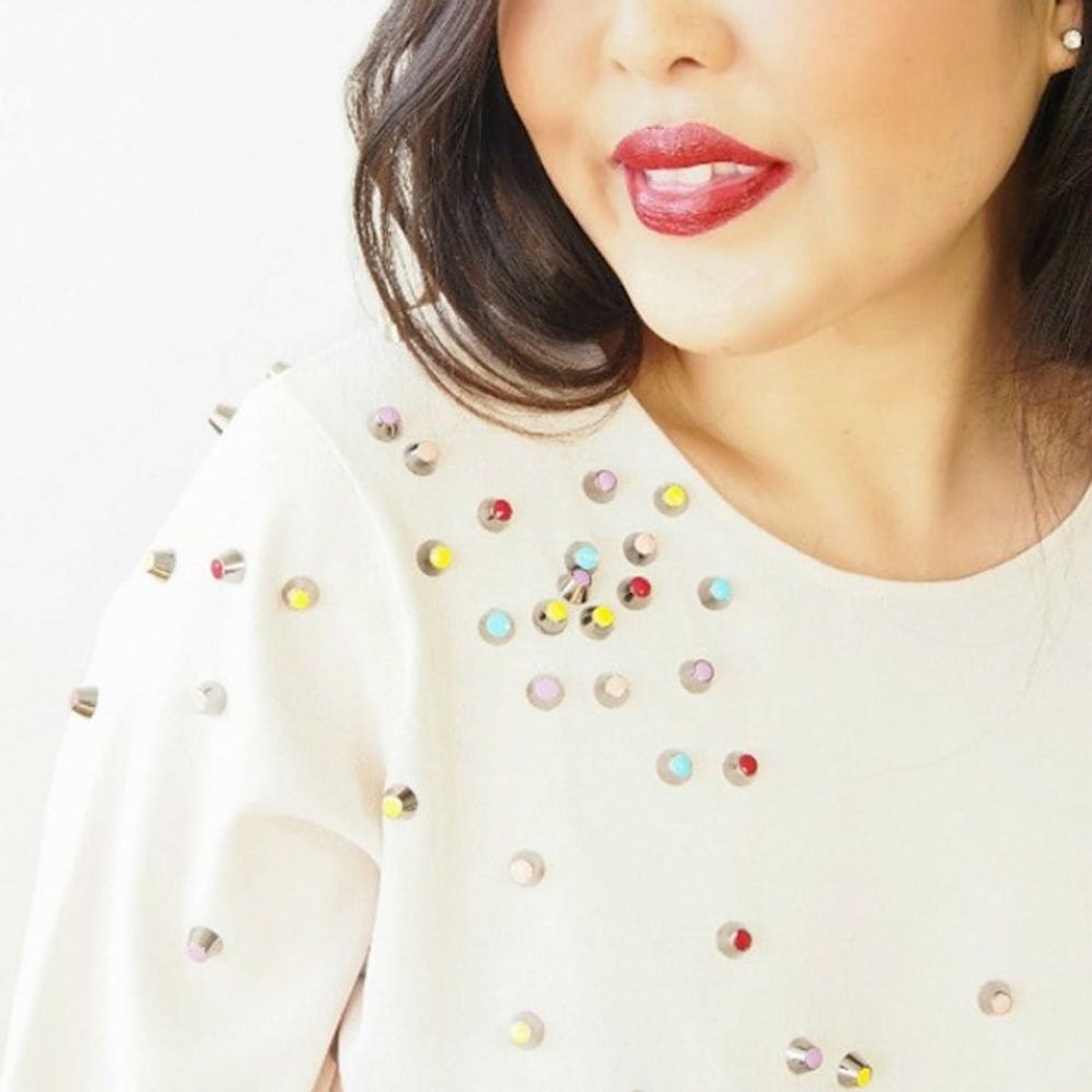 4. Embellished Tops: Add insta-glam to an old sweater with nail polish, glue and studs. (via Tuts Plus)