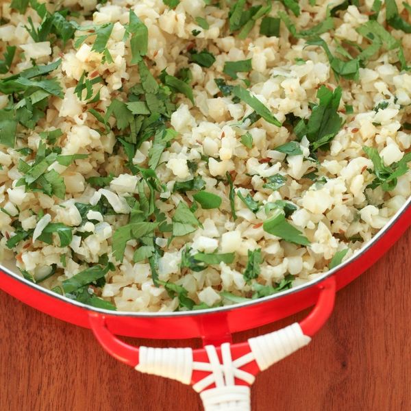 Don’t get me wrong; plump grains of perfectly steamed rice are a glorious thing, but more often than not, I’ll take a skillet full of its cauliflower cousin over the real deal. When done right, cauliflower rice is quite tasty in its own right; it’s much lighter and provides tons of fiber, making it an excellent accompaniment to everything from carnitas to garlic-ginger kale. The secret to success when cooking this quasi-grain is simple, and not much different than with traditional rice: Either pair the mild vegetable with a boldly flavored main or, as in this case, dress up the cauliflower rice itself.