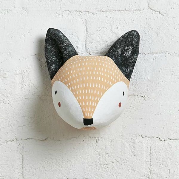 8. Awesome Art: Get artsy and dress up your baby’s nursery with something that’s truly special. This hand-painted papier-mâché fox head from Crate & Barrel ($29) is a 3-D piece of art that you can hang now and later take with you or switch for something else as your child grows.