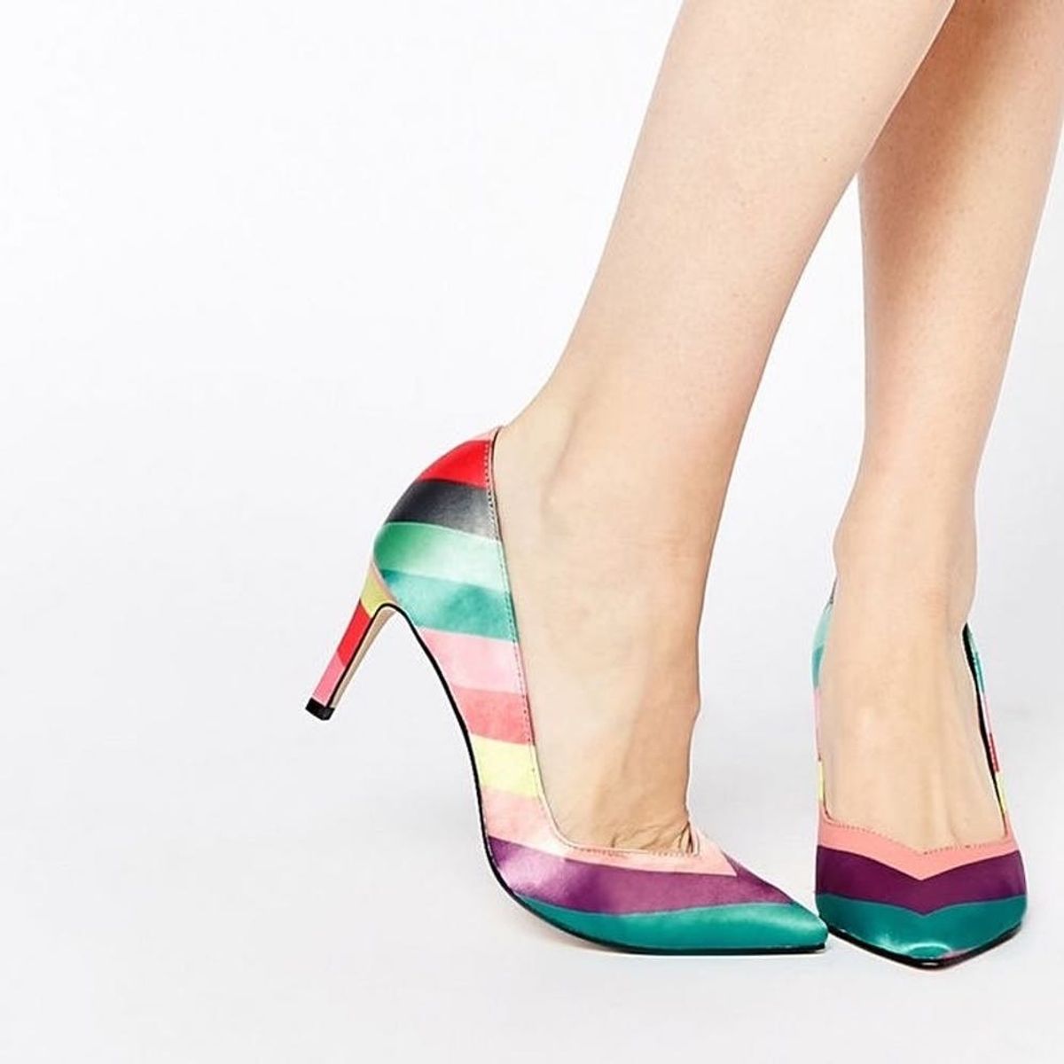 2. ASOS Soulmate Pointed Heels ($43): When your wedding date falls on Easter weekend, the pastel hues come out to play. These multi-colored pointed heels are not only an unexpected alternative to your everyday white pumps, but they’re also guaranteed to add a little extra somethin’ somethin’ to any tea-length dress.