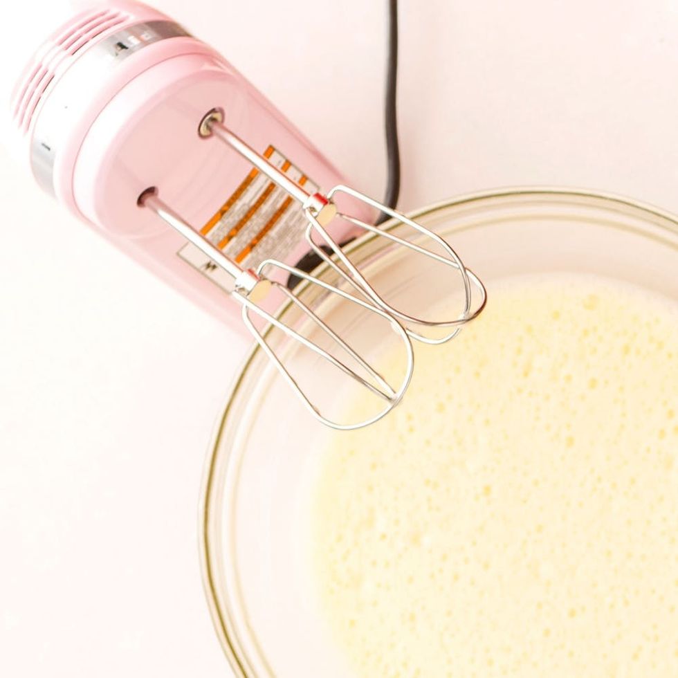3. While the chocolate is melting, beat eggs with an electric mixer in a separate bowl for 8 minutes, or until they have doubled in size and become light and fluffy.