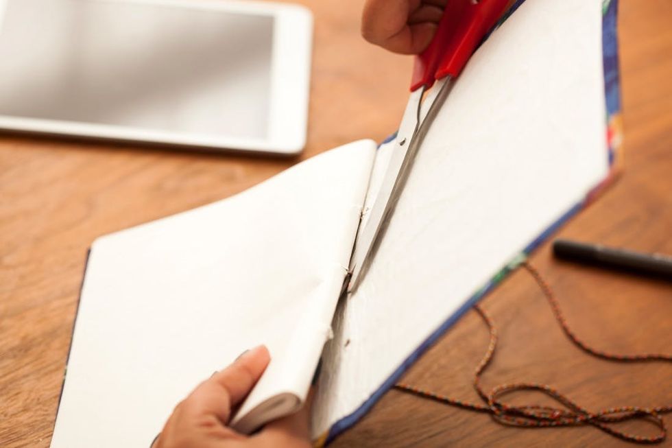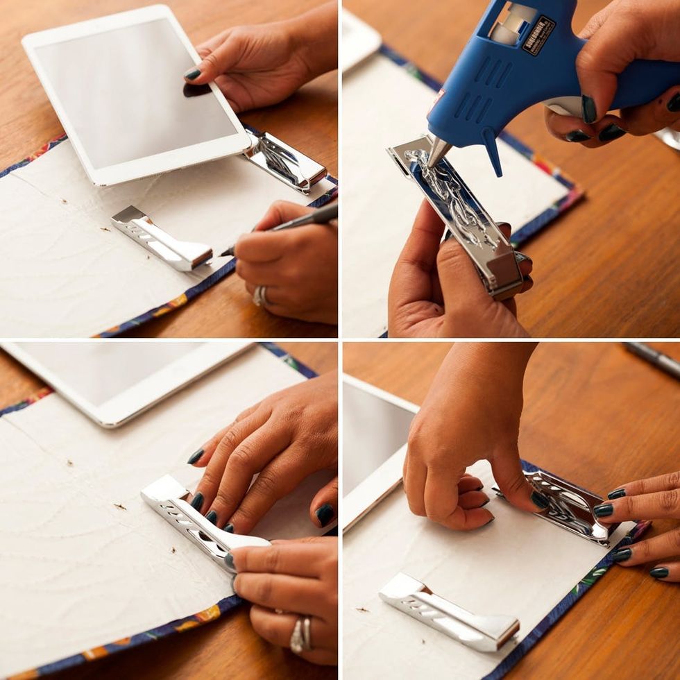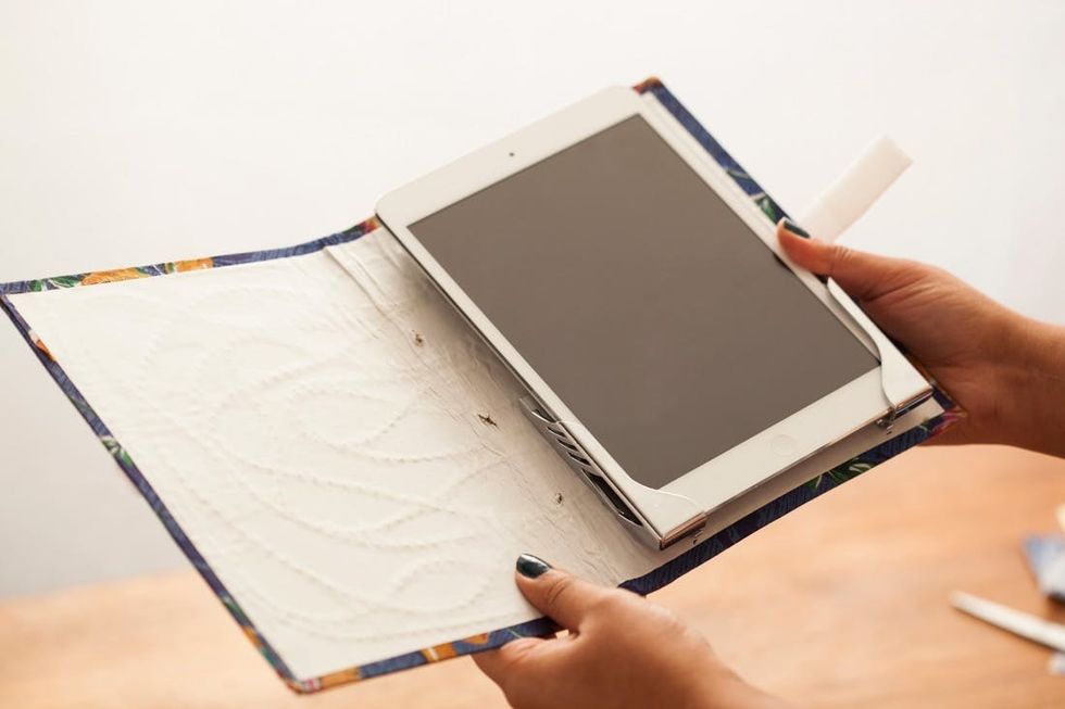 Holiday travel season is in full swing, and we’re on the hunt for clever ways to travel in style, keep our tech-cessories organized, and all without spending too much money. Today, we’ll show you how to turn an old fabric notebook into a stylish iPad case. Read on to see how it’s done.