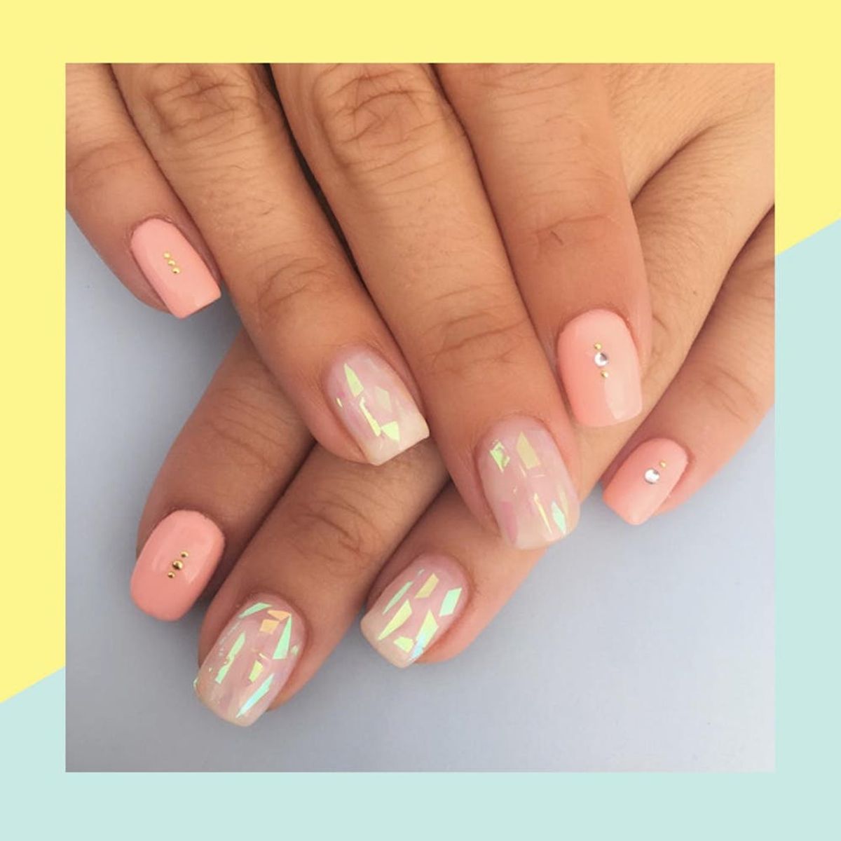 5. Simple Jewels: We love this light pink manicure with shiny, iridescent accents. It’s just trendy enough to turn heads, but can also read low-key for brides who want to keep things classic.