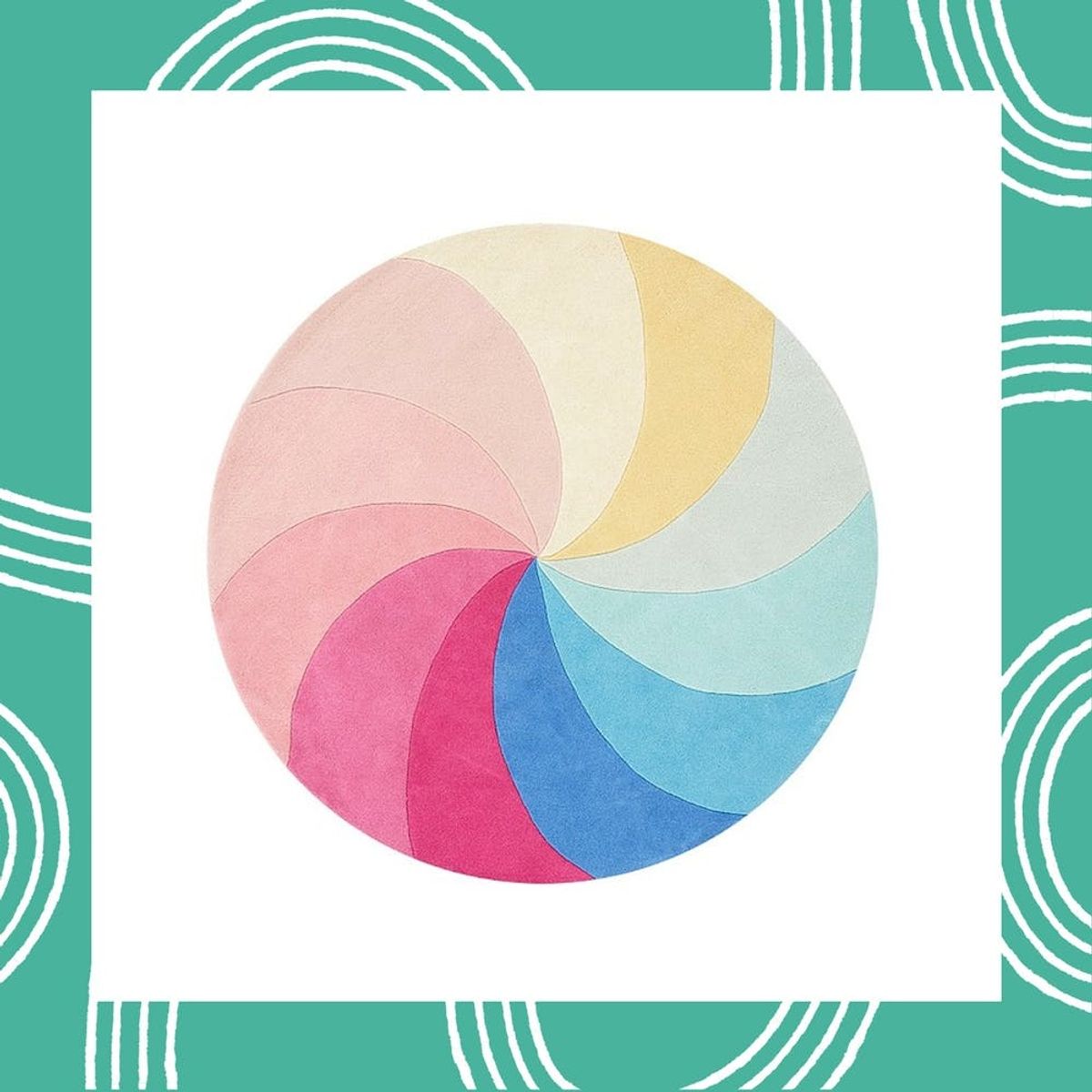 Add a splash of color to your baby’s room with this rainbow rug. Made from 100 percent wool, this soft accent piece is perfect for your baby’s tummy-time playdates.