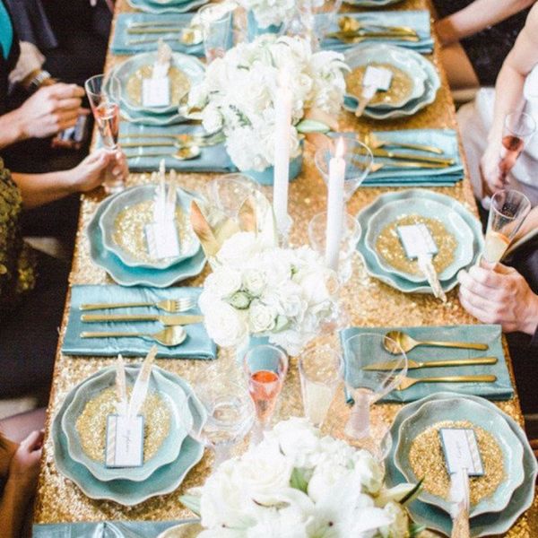 9. Two Tone: Sparkly gold and Tiffany blue make for a NYE party color scheme you’ll want to use every year. (via Style Me Pretty)