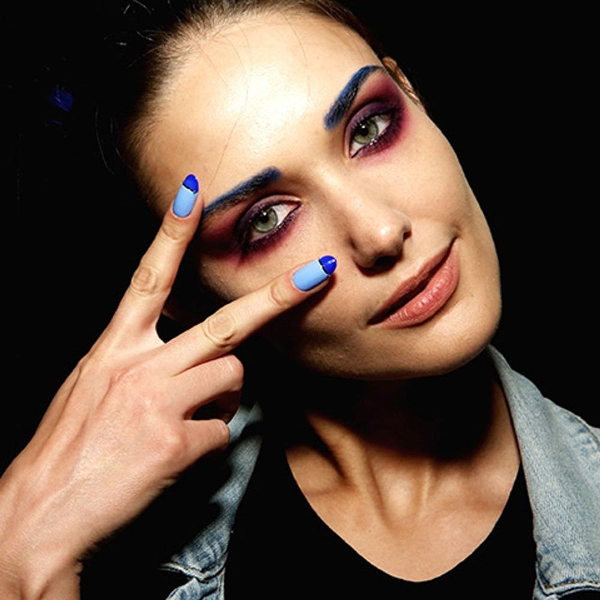 12. Stacked, Ombre Color at Rebecca Minkoff: Ombre nails in shades of cornflower blue and peachy pink mirrored the indie, boho flair of Minkoff’s spring collection. (Photo via Astrid Stawiarz/Getty)