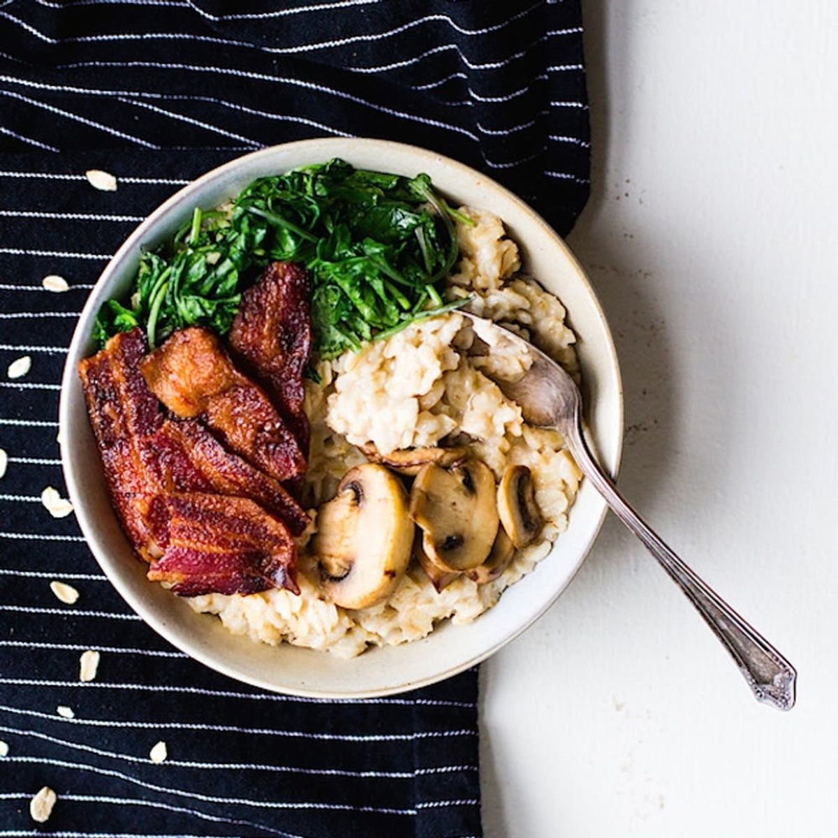 12. Savory Oatmeal With Garlicky Greens and Bacon: Grain bowls are so on trend, but quinoa or sorghum aren’t for everyone. Trade them out for oats if you’re not a fan. (via Heartbeet Kitchen)