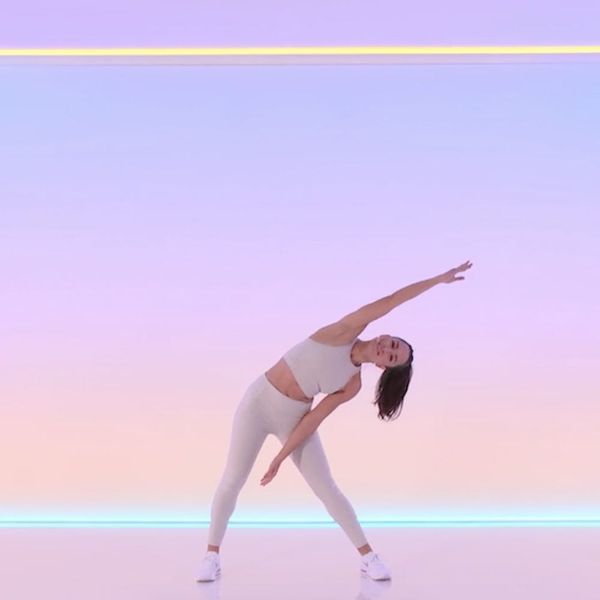 Another noteworthy feature is the lack of equipment needed. Besides the occasional handheld weights or yoga mat, nothing (other than yourself) is required, for good reason. “Body weight can be the most effective workout tool,” says Mullett. Additionally, each of the sessions is set in a neon-infused space that channels a lively, Jane Fonda-esque vibe, all mixed with modern music. “We love the idea of making the classes feel like a fun, efficient workout,” he says.