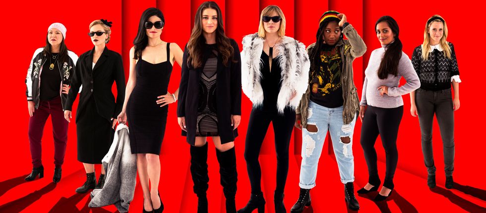 Constance: An expert pickpocket and a clear asset to the team, Awkwafina's character is the chosen one to do the big diamond swap, and her casual vibe keeps her out of the spotlight. Throw together this look by pairing up an embroidered bomber jacket ($26), maroon fitted sweats ($30), and a pink knit beanie. Perhaps then you too can possess the powers of a master thief.