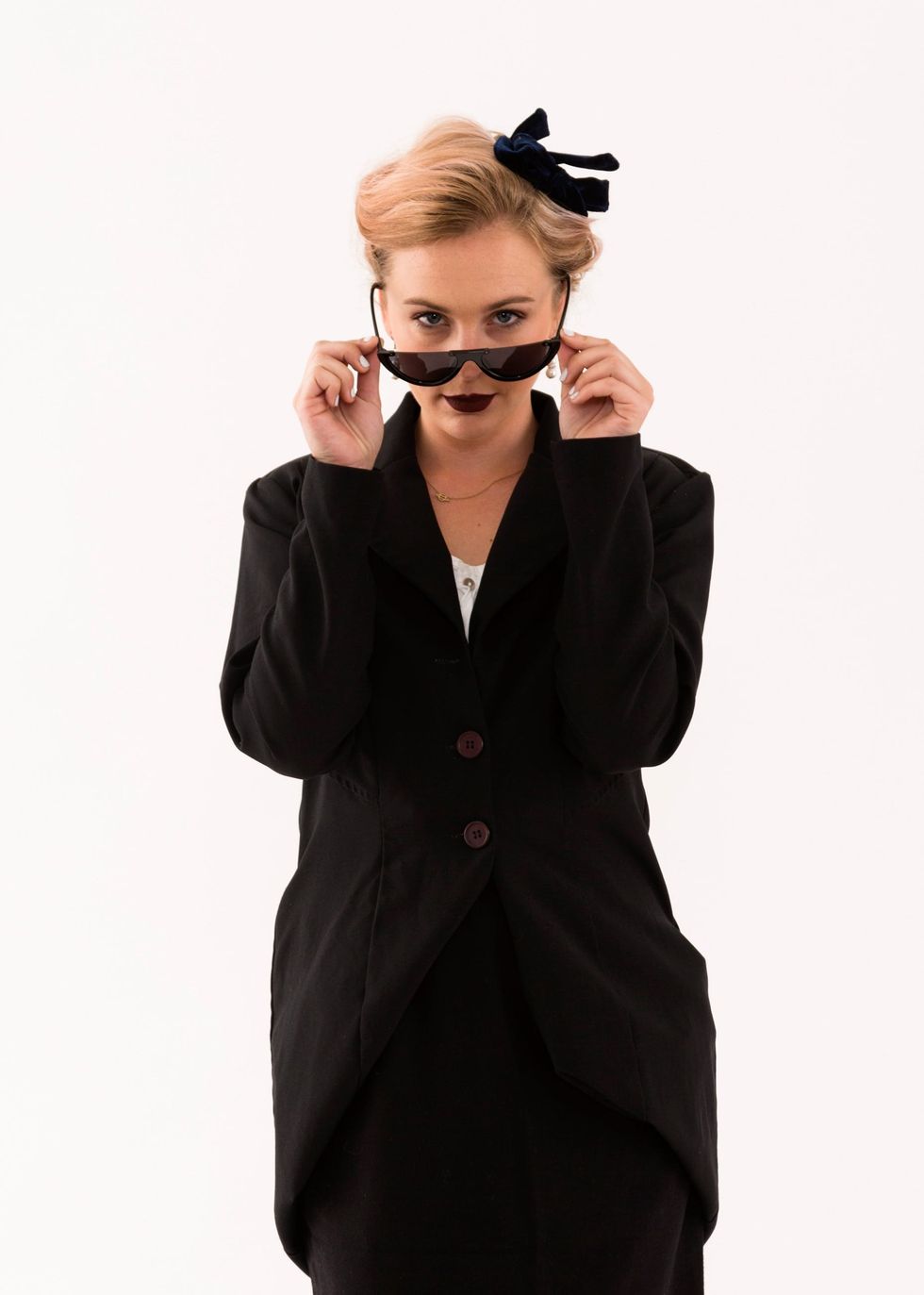 Rose: Tasked with designing the gang's heist disguises, Rose (played by Helena Bonham Carter) knows you can only execute a major crime in style. The fashionable femme always appears sleek and so can you by combining a sleek black blazer ($16), a black pencil skirt ($18), a vintage-inspired ruffled blouse ($16), a velvet bow ($11), and cool cat-eye sunglasses ($10).