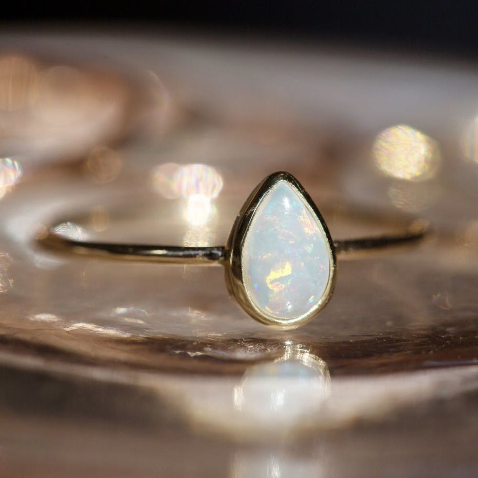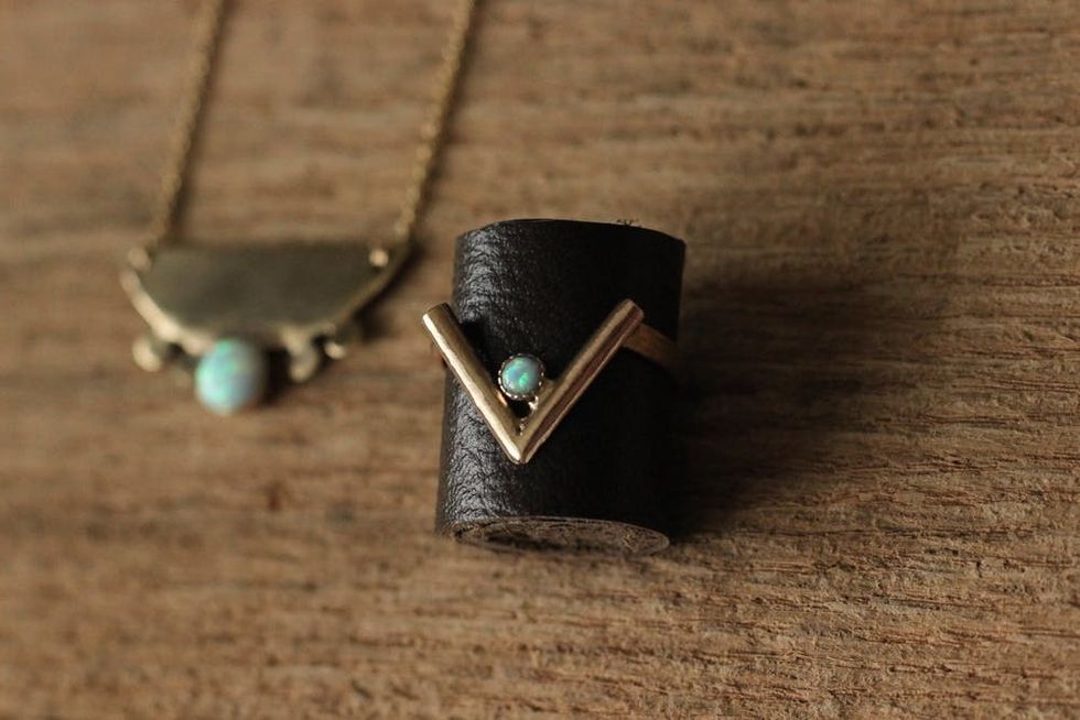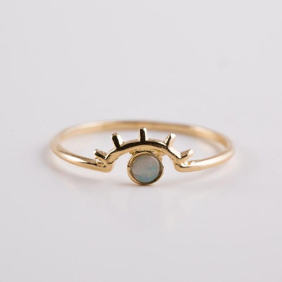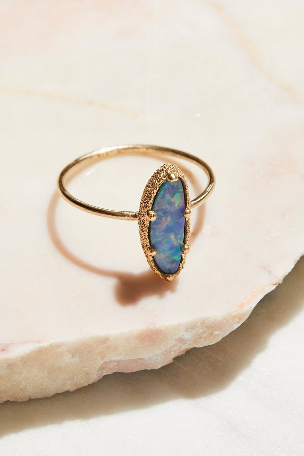 13. Emily Warden Designs Triangle Opal ($58): Both delicate and minimalist at the same time, this captivating opal ring with a 24K gold fill was made for the “less is more” set. Pro tip: Team it with the matching half-moon opal necklace for a look of everyday elegance.