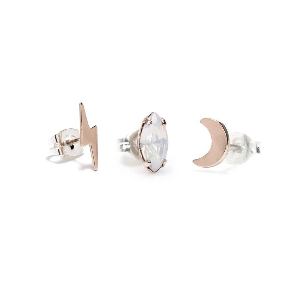 11. Bing Bang Ziggy Stardust Trio ($74): Pay testament to David Bowie with this rockstar trio of celestial-inspired studs from Bing Bang. The opal Swarovski crystal will dazzle under the moonlight.