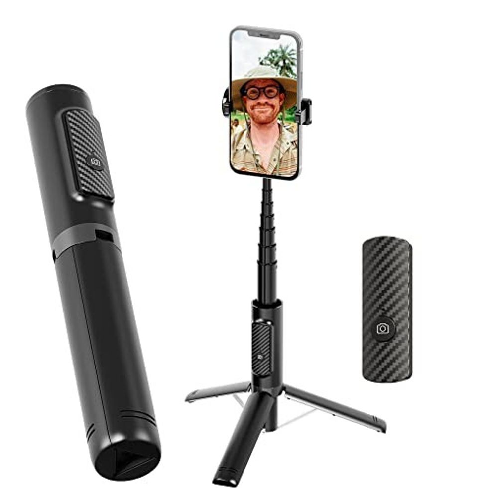 Believe it or not, this selfie stick tripod with remote extends from an eight-inch handheld cylinder all the way out to 33 inches long. Once mounted, you can rotate your phone 270 degrees and use the button on the handle, or the included remote, to snap a selfie.