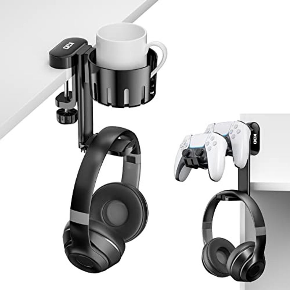 Need some extra desk space? Then invest in a handy 3-in-1 desk clamp cup holder. In addition to a secure space for your beverage, the bottom of this product features a hanger for your headphones. The cup holder even has a groove for mug handles. Plus, you can swap out the cup holder for a rack that can hold two game controllers.