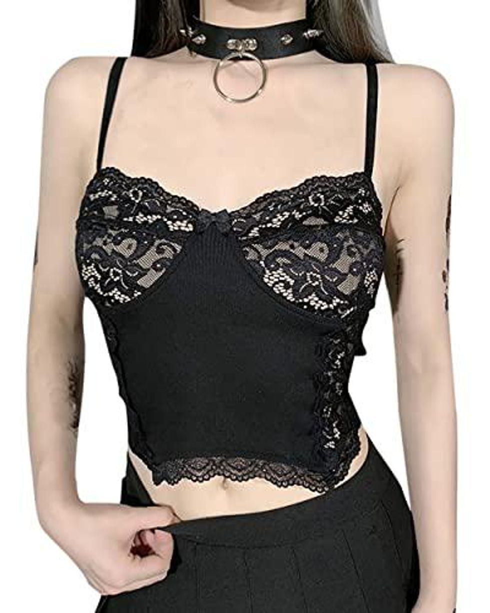 See it on AmazonLook stylish in the TSMNZMU Black Gothic Lace Cami Tank