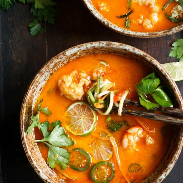 Coconut Curry Shrimp: Coconut milk is a nutrient-rich choice to sub in for dairy. If you sprinkle in some ginger and curry, along with shrimp, snow peas, and bell peppers, you'll find that your dinner tastes almost like your favorite takeout — only healthier. (via Plating Pixels)