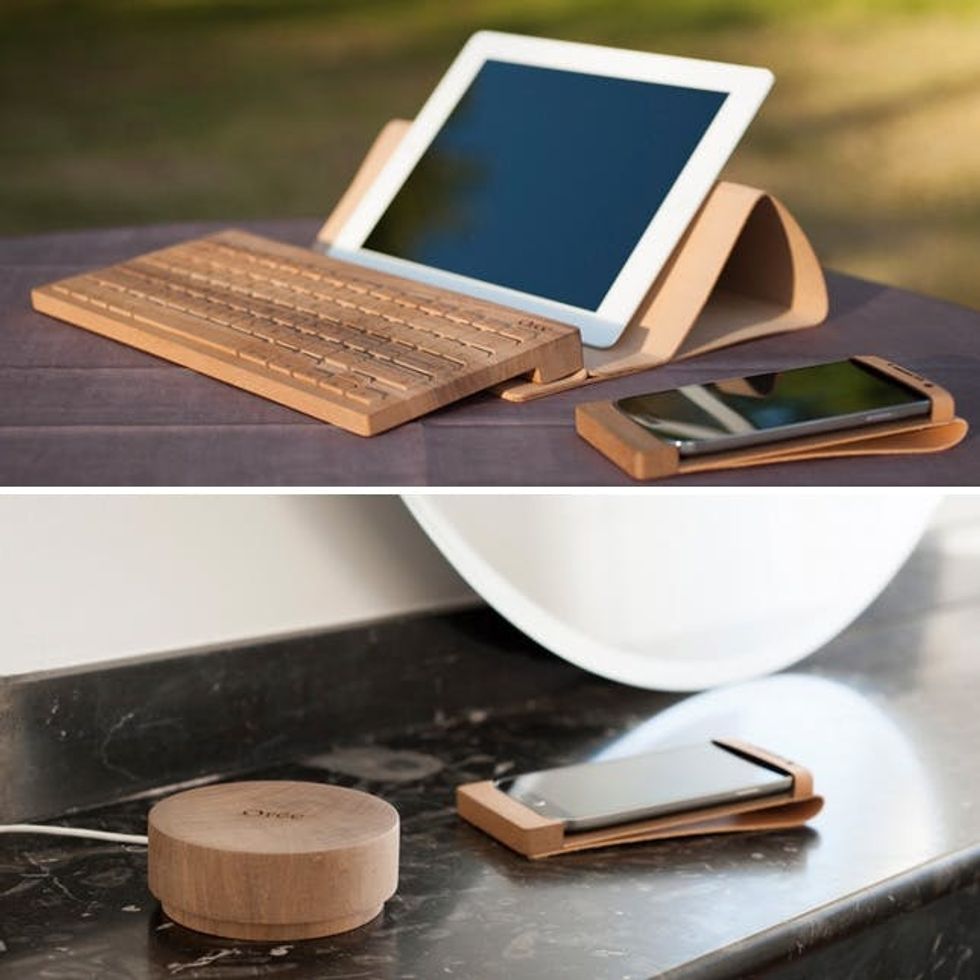 1. Orée Keyboard ($200): First up, the keyboard. This portable wireless keyboard works with tablets, smartphones, and any computer equipped with Bluetooth. You can specify keyboard layout by country, computer, select between maple and walnut, and can even specify what font you want to see on your keys. Oh, and you can add custom text! So cool.