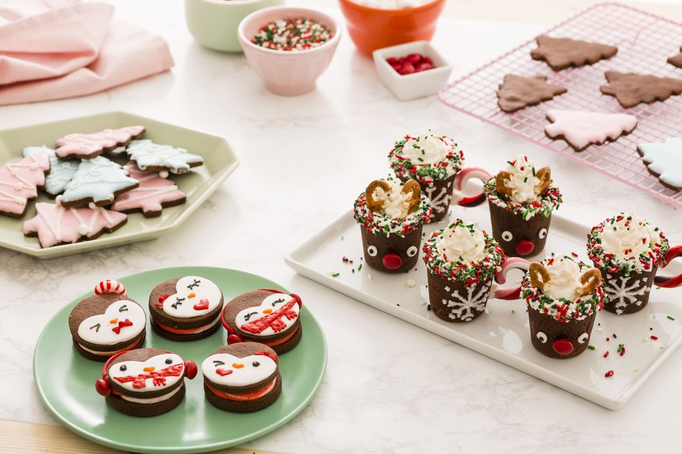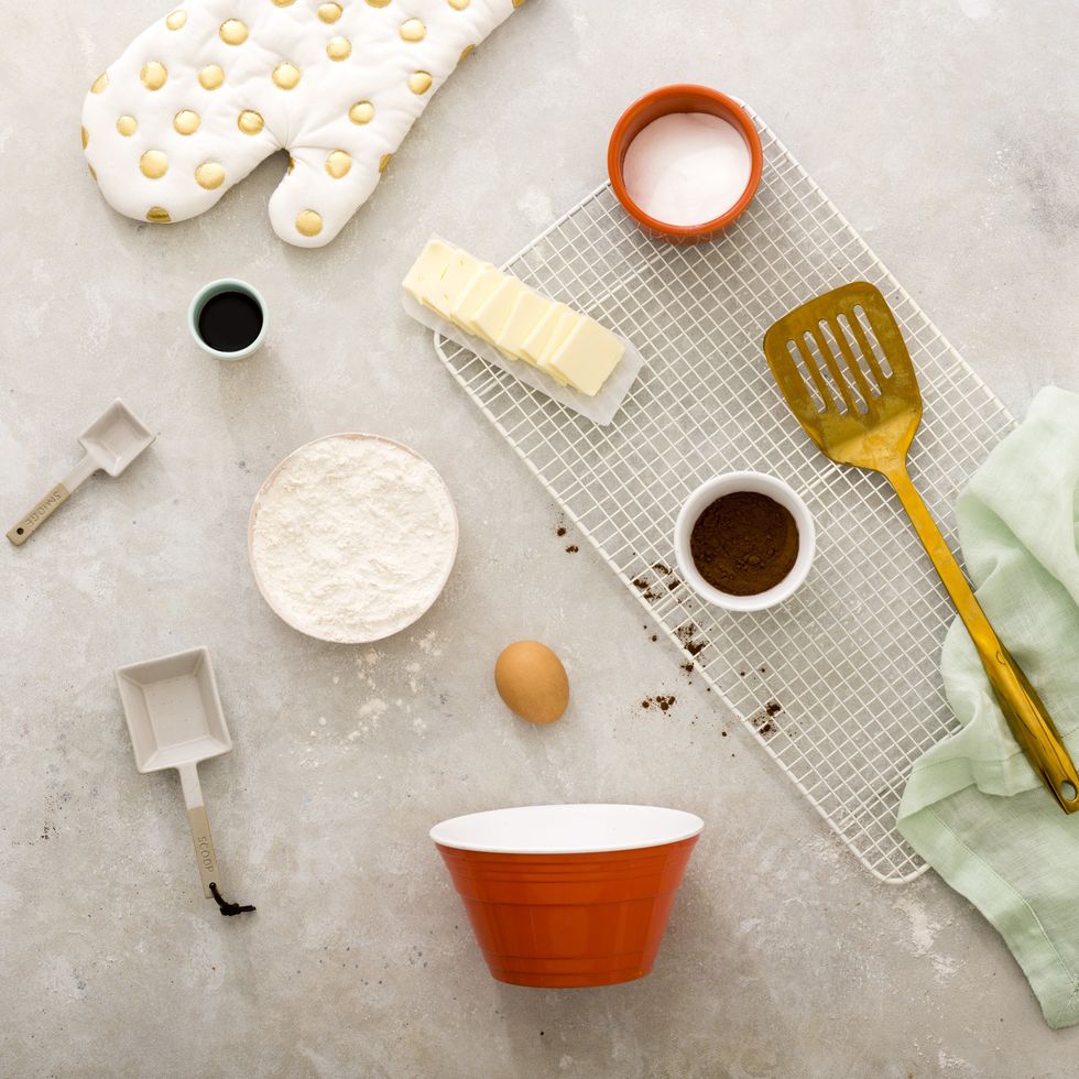 Gradually add flour and cocoa powder, and mix until dough forms and pulls away from the bowl. Divide dough into two even discs and wrap in cling wrap, then refrigerate for 30 minutes to an hour.