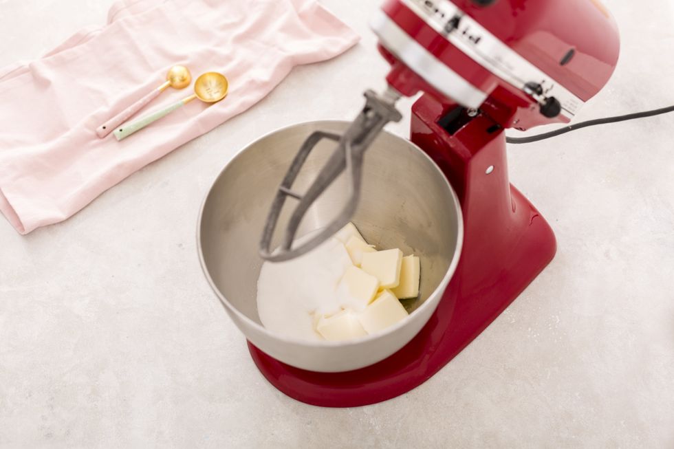 Using an electric mixer, beat butter and sugar until light and fluffy, then add egg and vanilla bean paste. Mix until just incorporated.