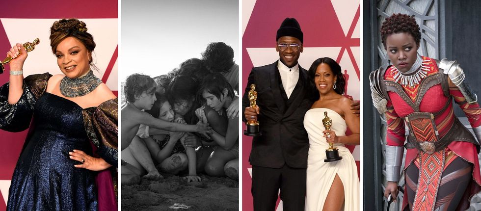 Black Performers and Creators: This year, the Oscars awarded trophies to seven Black winners in six categories. Ruth E. Carter and Hannah Beachler won for their costume design and production design, respectively, on Black Panther; Spike Lee and Kevin Willmott (along with Charlie Wachtel and David Rabinowitz) nabbed Best Adapted Screenplay for BlacKkKlansman; Regina King took the Best Supporting Actress award for If Beale Street Could Talk; and and Mahershala Ali won the Best Supporting Actor award for Green Book. Previously, the 2017 Oscars held the record for the most individual Black winners, one year after the #OscarsSoWhite controversy. (Photo via Frazer Harrison/Getty Images)