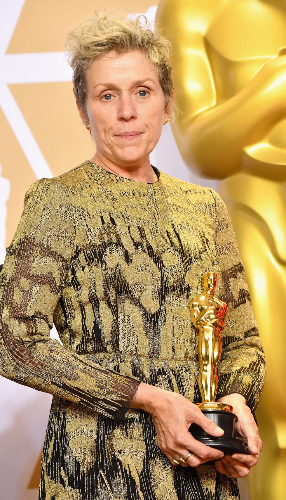 Frances McDormand, 2018: McDormand won her second Best Actress Oscar for her role as Mildred Hayes in Three Billboards Outside Ebbing, Missouri. (Photo via Jeff Kravitz/FilmMagic)