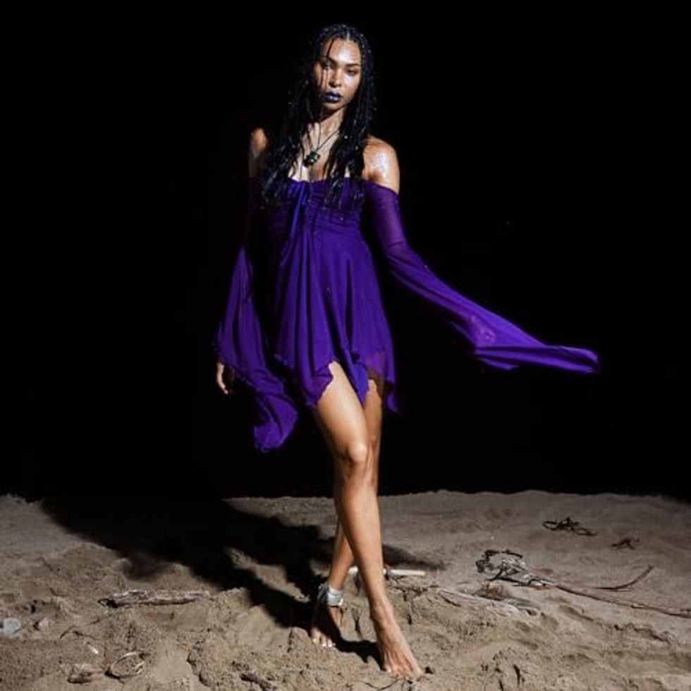 Want to give dark ethereal vibes during your next festival? This Dolls Kill handkerchief dress will have you feeling like a fairy. With a purple flowy design with handkerchief details on the hem and sleeves, this dress will sway with you as you dance around. Consider pairing with some black boots and fishnets to complete the look.