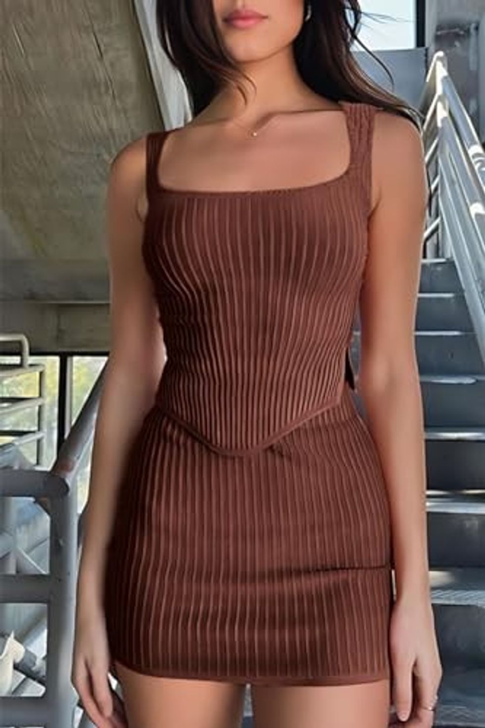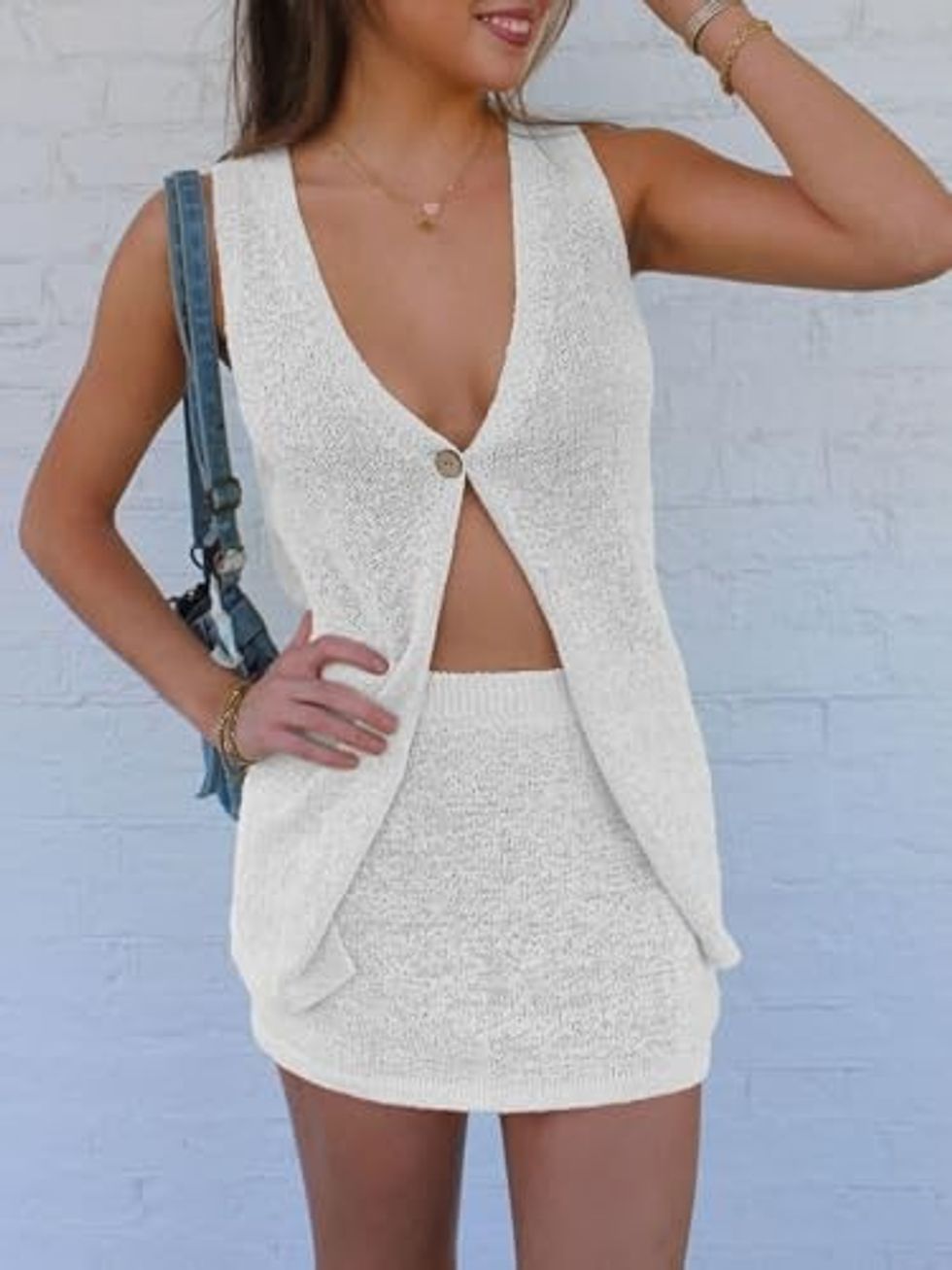 See it on AmazonFeel Confident In a Vest Knit Top and Mini Skirt Set