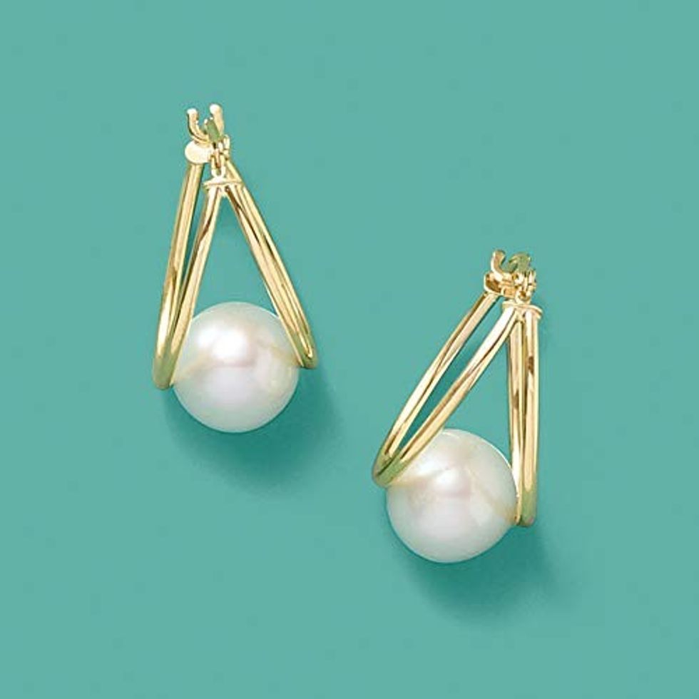 Revel in timeless elegance in these Ross-Simons Cultured Pearl Double-Hoop Earrings. These accessories are a dance of sophistication and grace, adding a touch of class to every look.