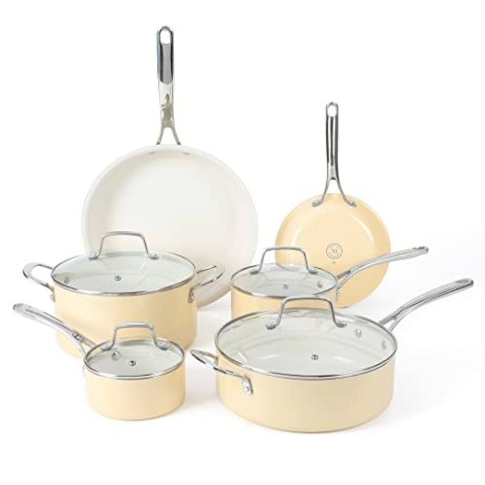Whip up culinary masterpieces in this Martha Stewart's Ten-Piece Cookware Set this holiday season. Indulge in the endless culinary possibilities from the comfort of your kitchen. Crafted with premium nonstick ceramic coating, it's your gateway to exploring the art of cuisine.