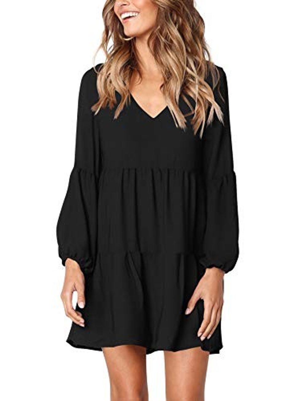 Capture the essence of the '70s with this breezy tunic-style mini dress that has amassed over 60,000 five-star ratings. Featuring a deep V neckline, lantern sleeves, empire waist, and tiered skirt, it exudes subtle retro charm. Whether you're spending a day at the beach, attending virtual meetings, or enjoying a casual brunch, this comfortable and versatile dress is a reliable choice. With 40 colors and patterns to choose from, you'll find the perfect one to express your style.