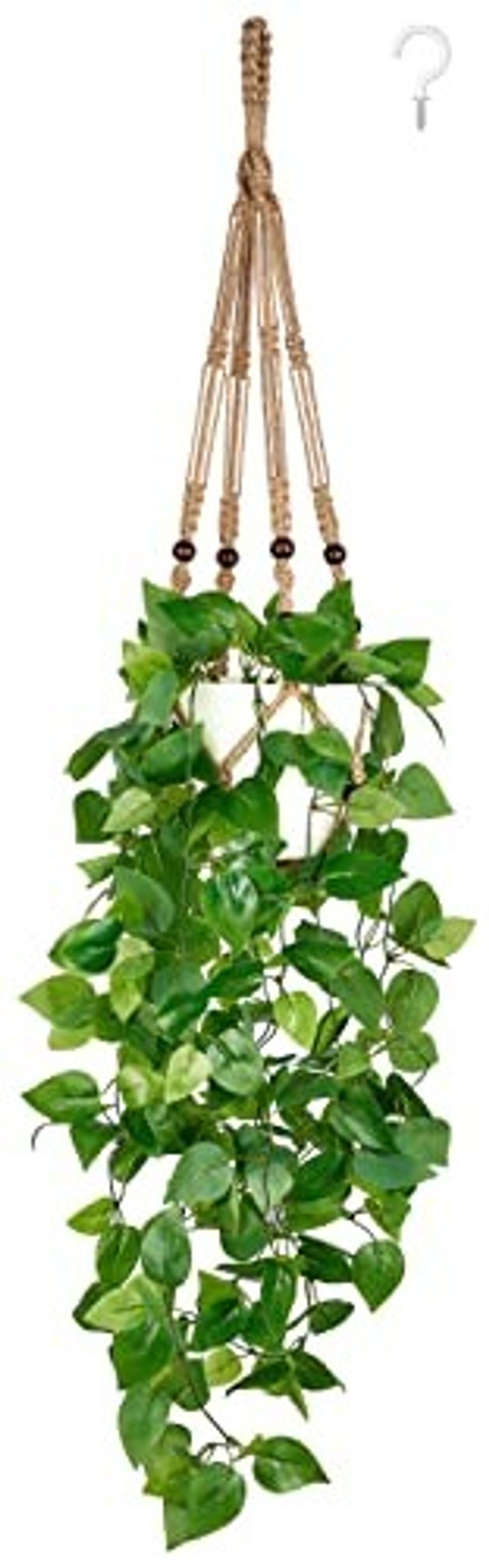 See it on AmazonAn Artificial Plant With A Macrame Hanger