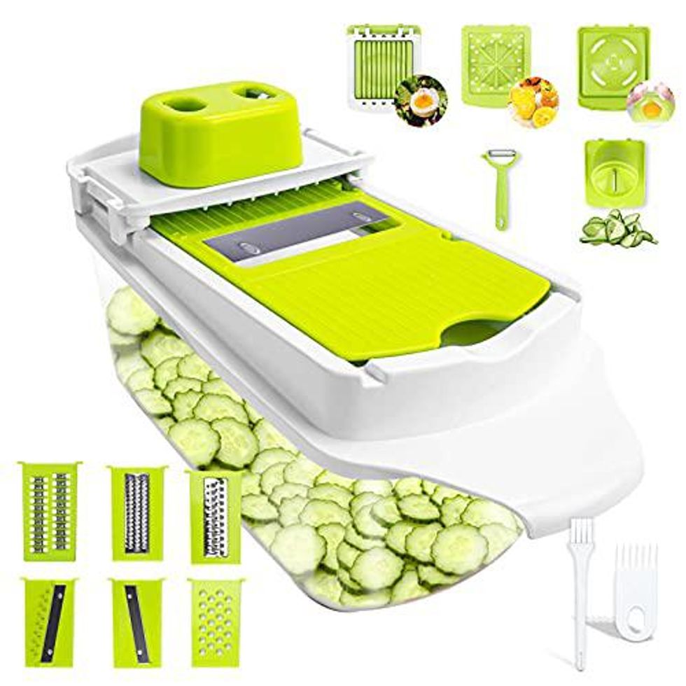 Make a healthy salad or delicious fruit bowl in less time than it takes to cook a pizza! If you don't eat as much healthy food as you'd like because chopping fruits and vegetables is a hassle, this gadget is for you. This 7-piece set is Amazon's Choice for food choppers because the 4 razor-sharp interchangeable blades are easy to switch and safe to use. Enjoy crispy, healthy foods without all the prep-time. Order today for fast delivery