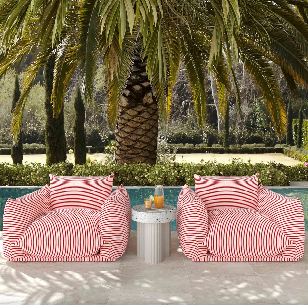 Get just as cozy outside as you do inside with these striped Saint Tropez chairs. The playful design inspires a casual yet party vibe for a fun and whimsical look.