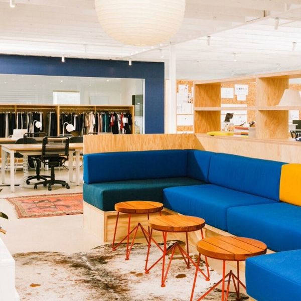 With its colorful cushions and informal, inviting vibe, the custom-built lounge area is a team fave, perfect for group lunches and impromptu meetings. Toward the back of the room, Fox incorporated built-ins to hold products and samples. And with so many cute pieces on display, it’s easy to see how this group stays motivated.