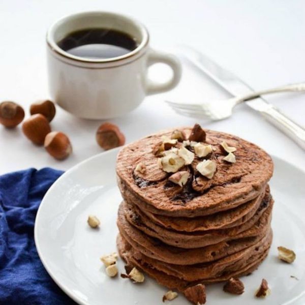 Odi over at Nourish Gal is flipping protein-packed chocolate flapjacks that are low in sugar but full of fiber and healthy fat, provided by whole wheat flour and hazelnuts. Chocolate-hazelnut pancakes? Whoa! A nutritious breakfast that looks and tastes just like dessert. We’ve just died and gone to heaven.