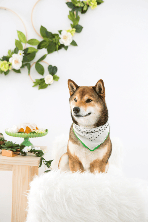 Nacho, a sesame shiba inu, came perfectly dressed with his white and green polka dot handkerchief. “I’ve never met a brunch I don’t like,” says Nacho.