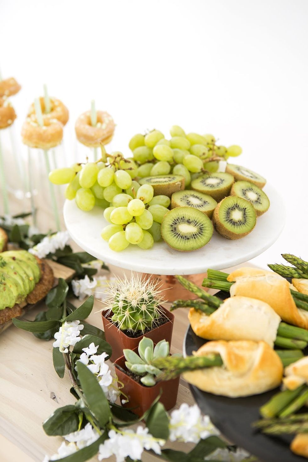 A big plus is that green food is generally on the healthy side, but at the same time, we wanted to treat ourselves! We decided to balance our table with healthy options like a green fruit platter and fun food like mini glazed donuts with green sprinkles.