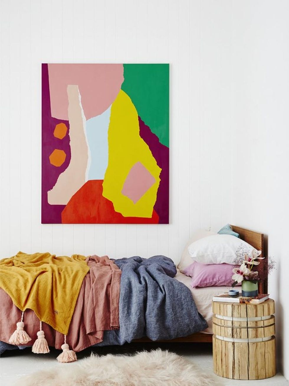 10. Bold and Bright: You can’t beat artwork that brings in the entire Far-Fetched palette. Hang something similar over your bed and snag coordinating blankets for an amazing #wokeuplikethis moment. (via Leah Bartholomew)