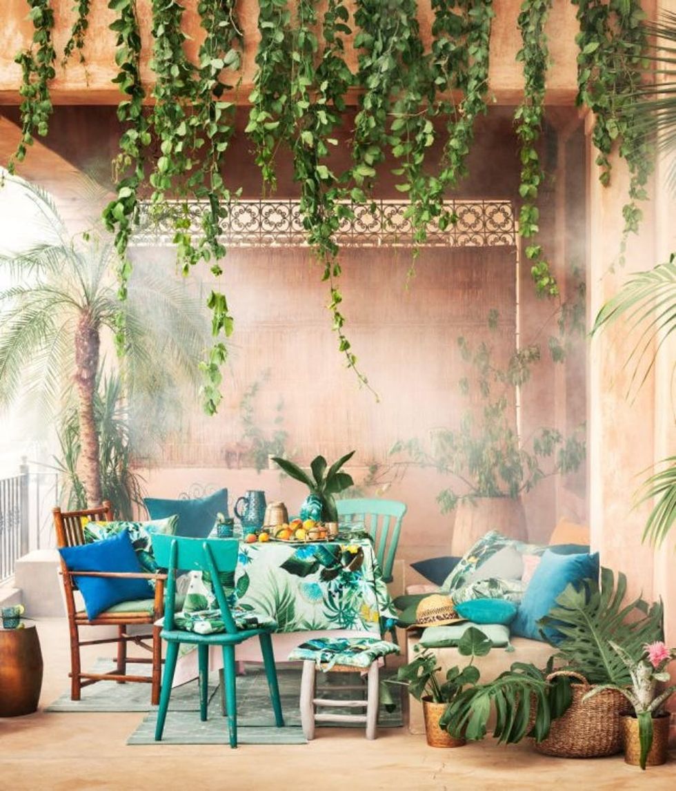 12. Patio Porn: Sometimes all you need is a killer tablecloth. Okay, and maybe a teal chair or two. This outdoor space rocks all the colors in the palette with a fab selection of throw pillows and plenty of plant life. (via H&M)