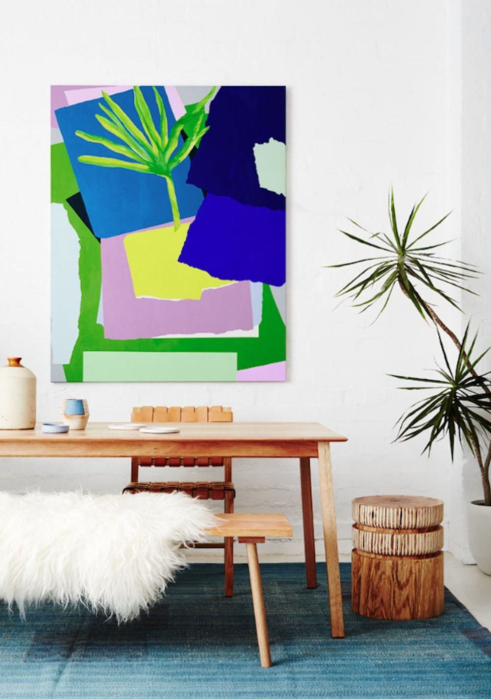 14. All About That Art: If you’re kind of an artsy #girlboss, pick up a giant canvas and try your hand at making a Verdure color-blocked masterpiece. Paired with natural fibers, like fluffy wool and unfinished wood, it’ll be the star of your decor. (via Leah Bartholomew)
