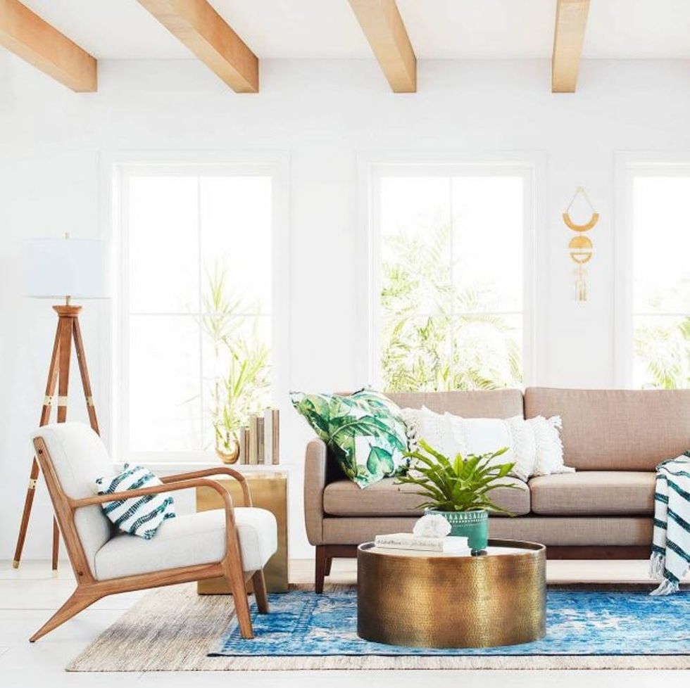 10. Coastal Influence: With a color palette focused on shades found in nature, it only makes sense to turn to beachy decor. The light blue-ish gray sofa and chunky wooden coffee table are perfect accents for the laid-back style. (via Amber Interiors)