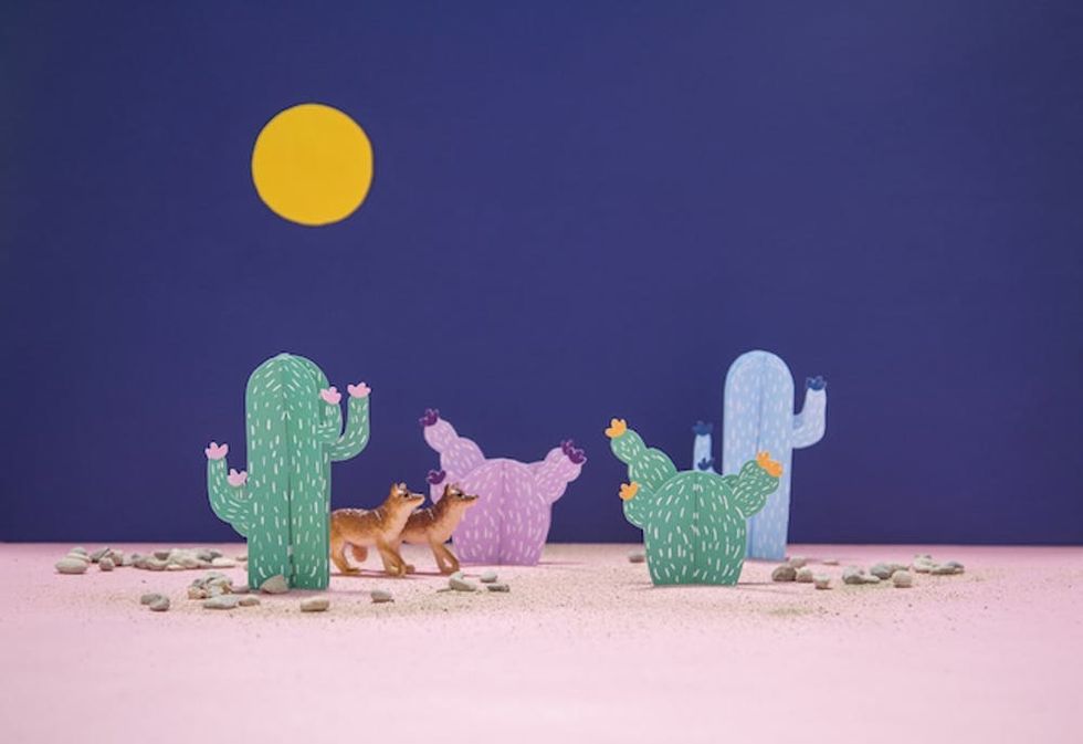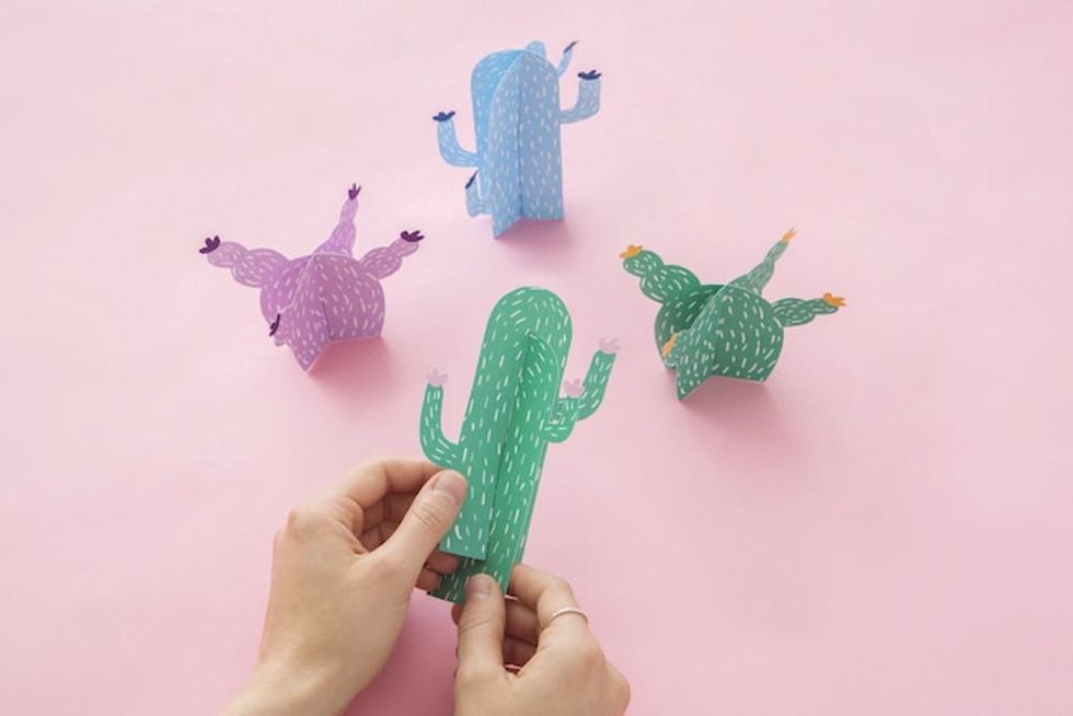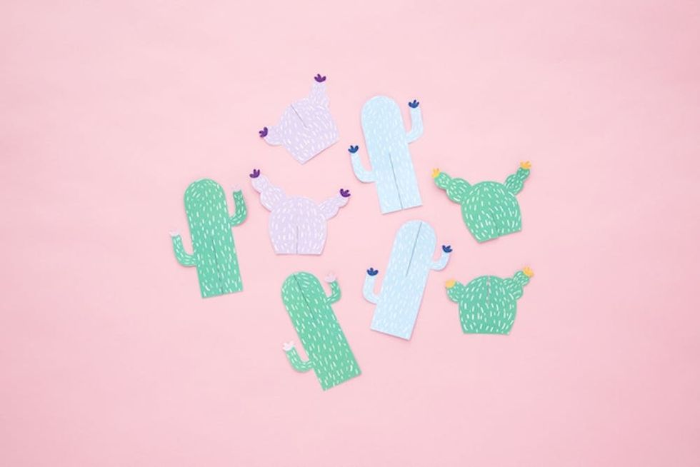 You can put your paper plants in tiny pots or create a cool desert scene like the one above. Either way, your cacti game will be fierce.