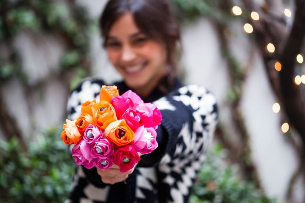 Your first thought upon reading this title might be, what the heck are ranunculi? It’s the plural form of ranunculus, one of our favorite flowers… ever! The layered petals are delicate, loaded with color, and pack a major punch in any floral arrangement. So naturally, we decided to make them out of paper, and with sparkly stigma because, why not? We’ll also show you how to use them to make a Valentine’s Day fauxquet, a gorgeous crown, or add them to a string of party lights!