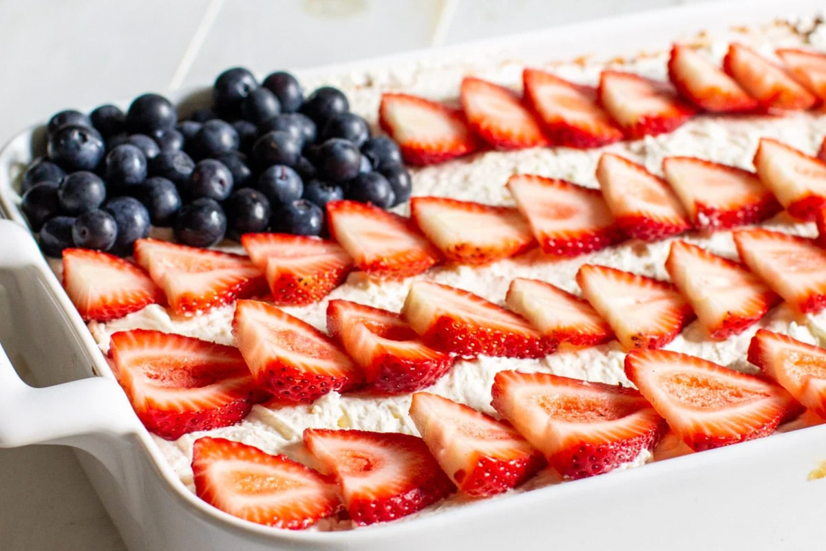 Strawberry Flag Poke Cake